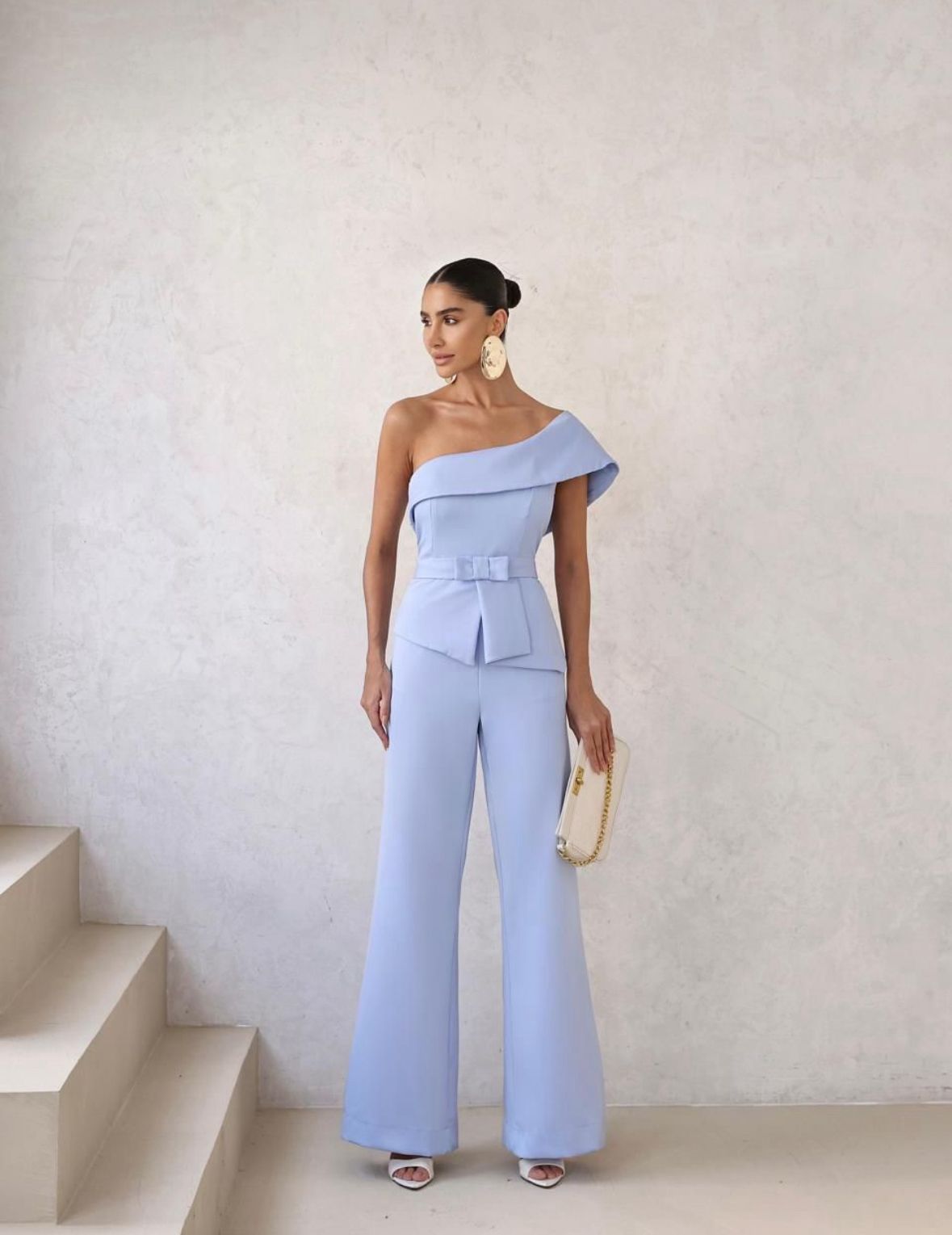 MACACÃO ALFAIATARIA PANTALONA CINTO - AZUL CLARO