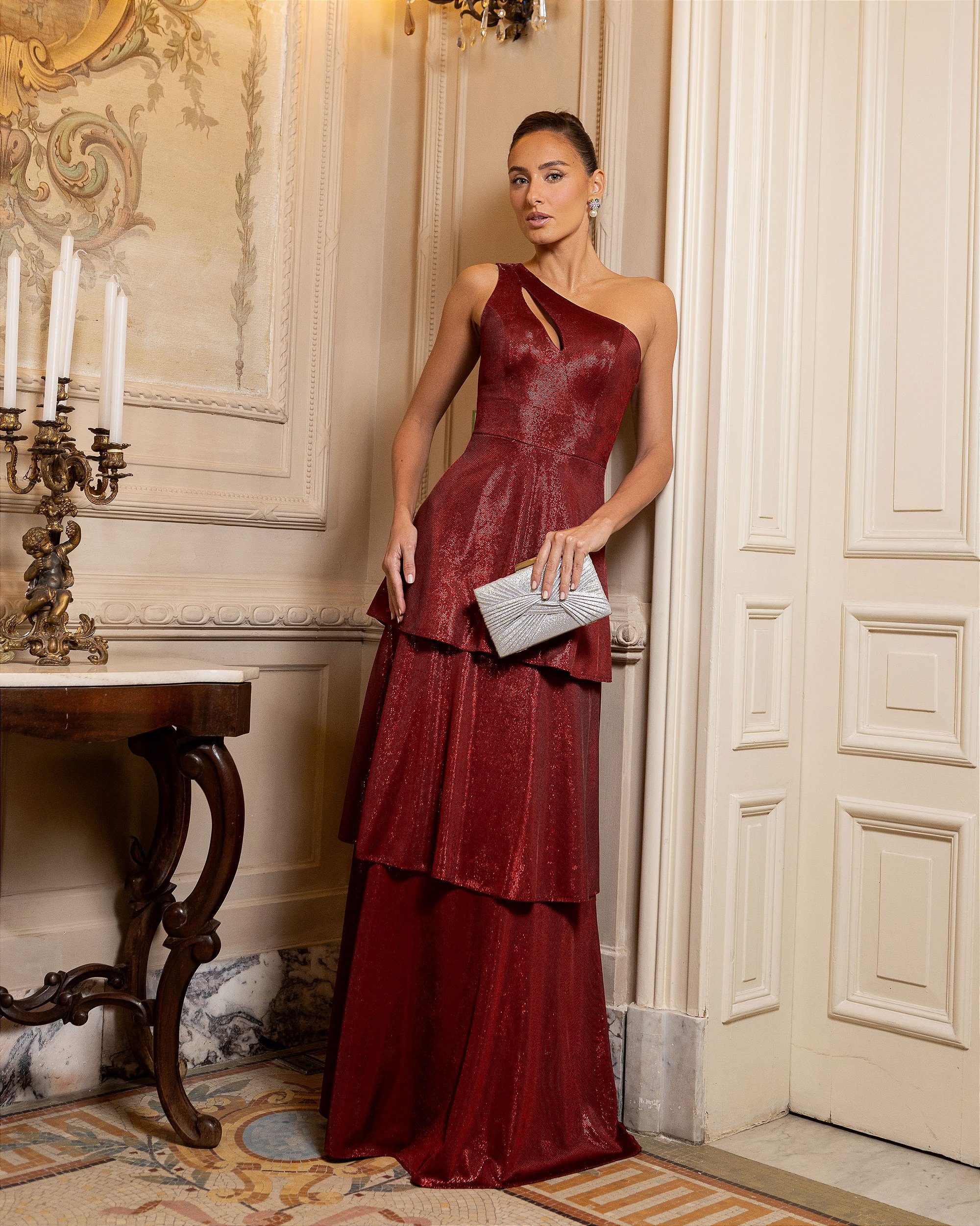 A saia em camadas proporciona movimento, leveza e um efeito visual marcante, completando o look com glamour e feminilidade. Possui forro interno e fechamento por zíper nas costas, garantindo segurança e conforto ao vestir. 🌙✨