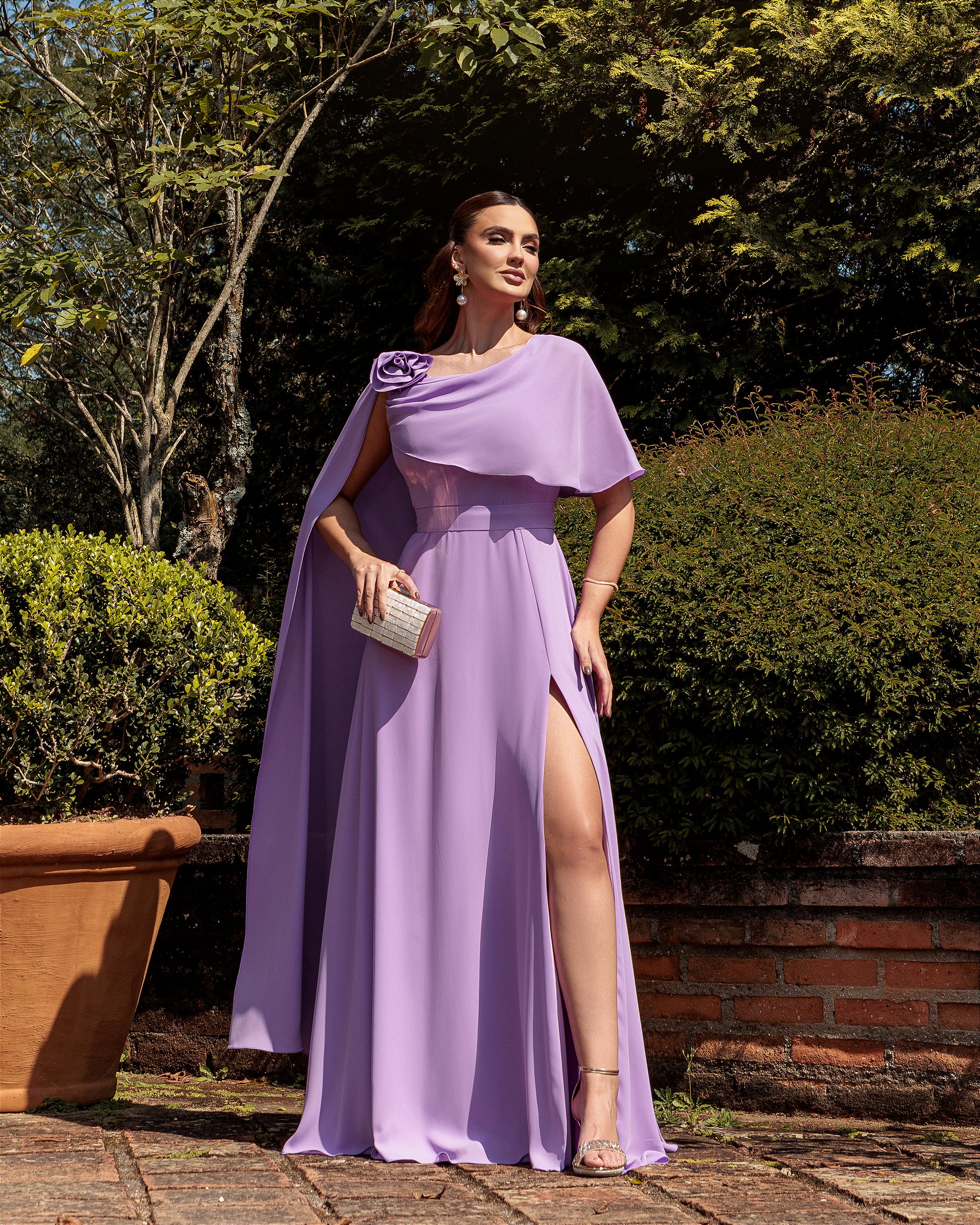 VESTIDO DE FESTA LONGO GARDEN DETALHE CAPA - LAVANDA