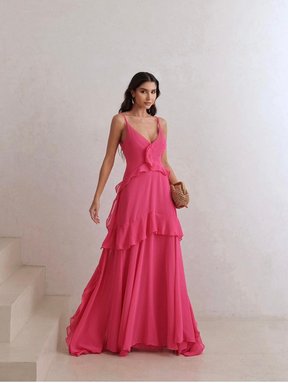 VESTIDO MARIANA CHIFFON BABADOS - PINK