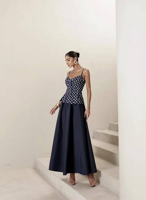 A Saia Longuete Tricoline Evasê une sofisticação e conforto em uma peça versátil e atemporal.