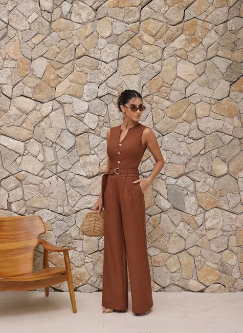 O Macacão com Fivela Dourada foi pensado para mulheres que buscam elegância sem abrir mão do conforto.
