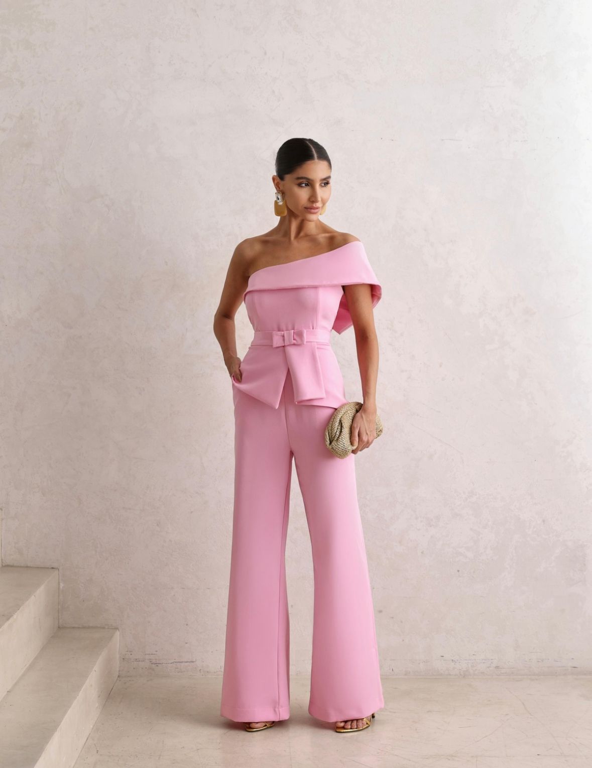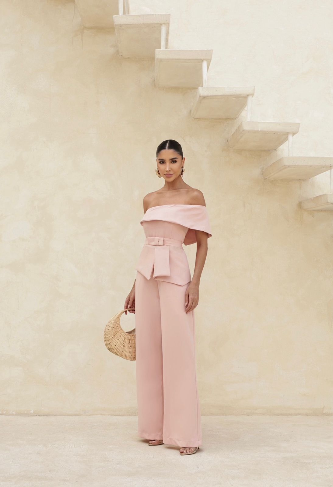 Com lapela no ombro que traz um charme diferenciado, a peça acompanha uma faixa cinto no mesmo tecido, que marca a cintura com estilo e sofisticação 👌💖. A modelagem pantalona alonga a silhueta e garante movimento impecável a cada passo.