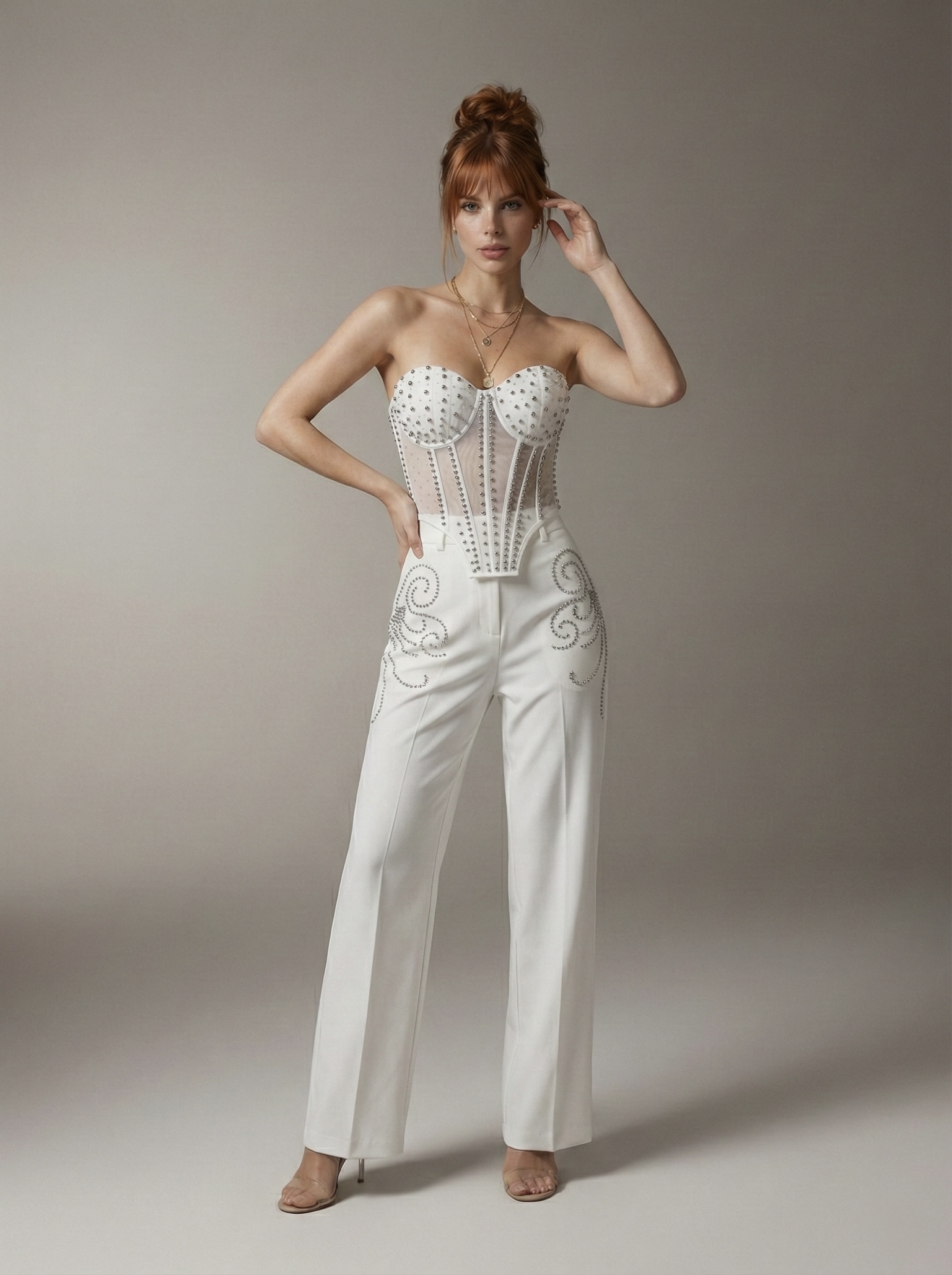 O design é elevado por 2 bordados exclusivos em pérolas na parte frontal, que adicionam um ponto de luz artesanal à sobriedade da alfaiataria. Pensada para oferecer o máximo de conforto e qualidade, a peça é totalmente forrada, possui bolsos faca laterais funcionais e um fechamento refinado com botões e zíper. É a calça ideal para mulheres que buscam uma peça de presença para eventos formais e ocasiões especiais.