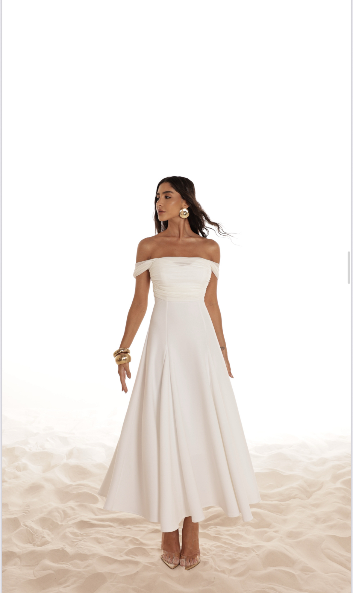 VESTIDO MIDI SAFIRA OMBRO A OMBRO - OFF WHITE