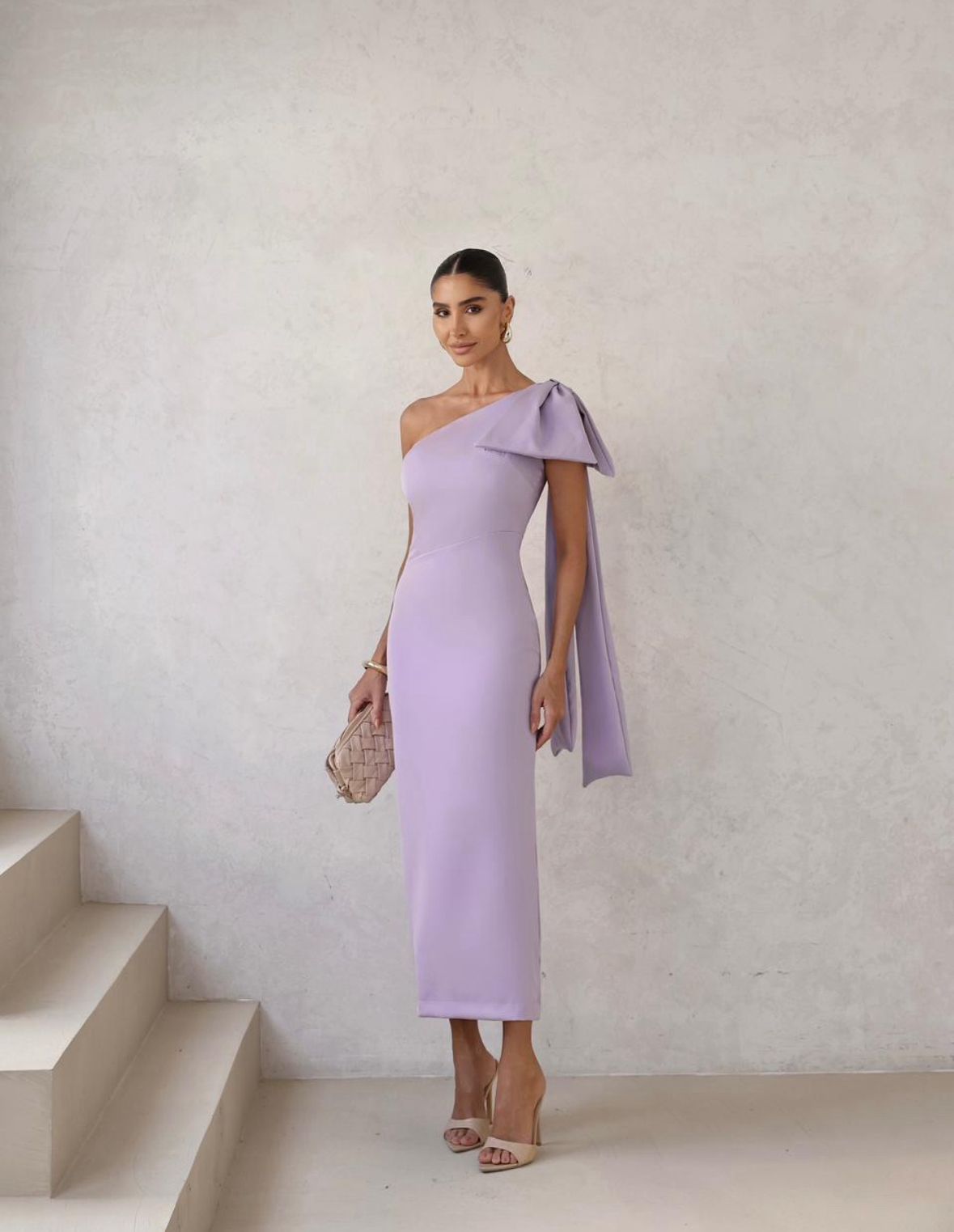 VESTIDO FLÁVIA LONGUETE TUBINHO LAÇO - LAVANDA