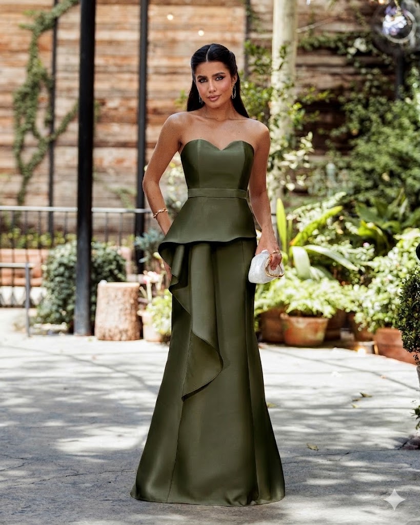 VESTIDO GLAM DECOTE CORAÇÃO ZIBELINE T.Q.C - VERDE OLIVA