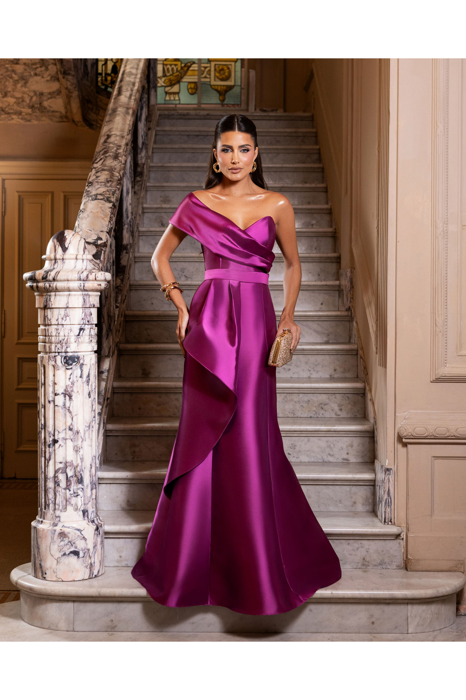 VESTIDO DE FESTA ANA CLARA UM OMBRO ZIBELINE - FÚCSIA