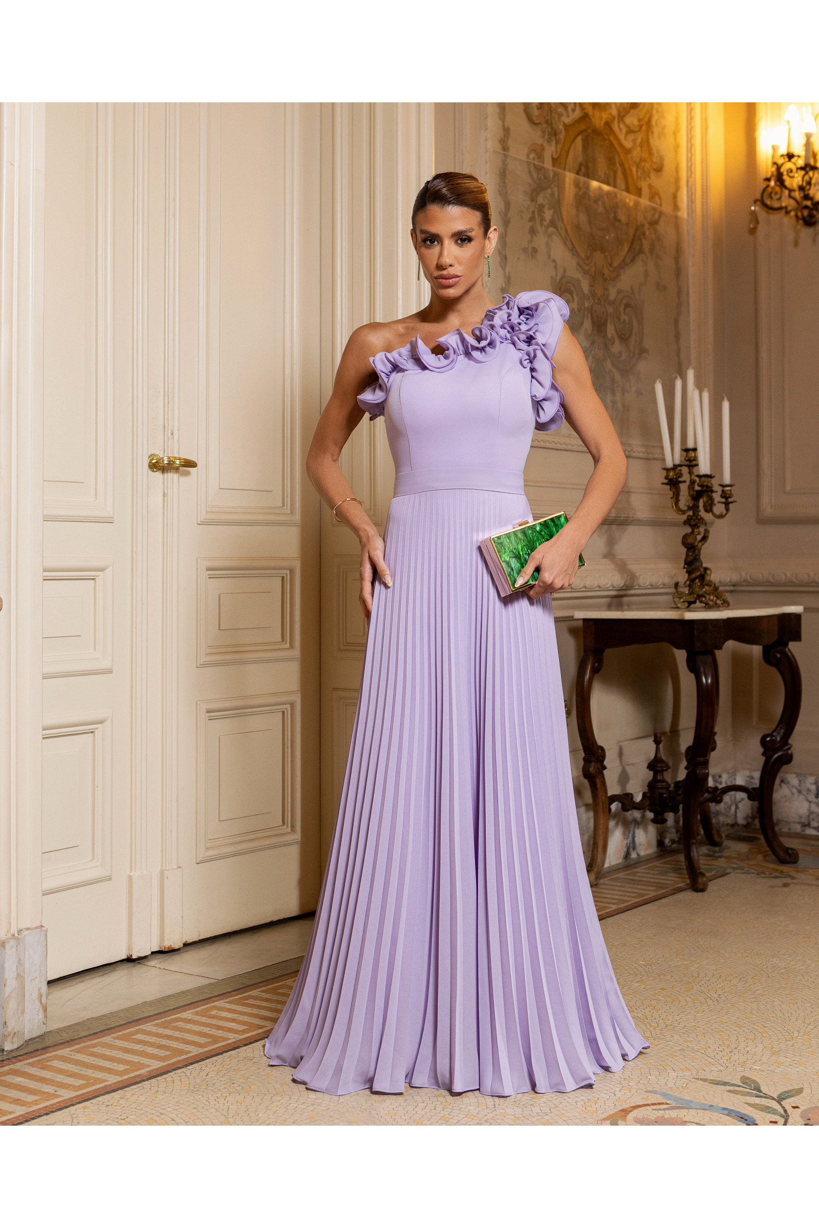 VESTIDO DE FESTA BOHEMIAN UM OMBRO COM DETALHE FLOWERS