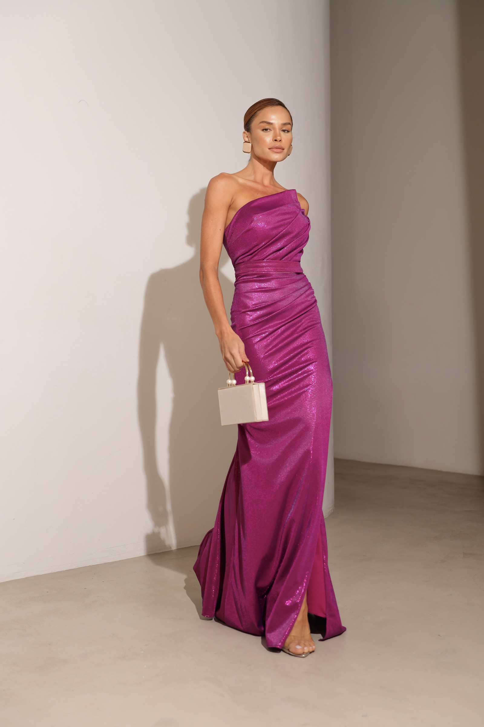 A sua modelagem tomara que caia valoriza o colo com delicadeza e sofisticação, enquanto o bojo estruturado garante sustentação e segurança durante todo o evento. Com um design clássico e poderoso, o Vestido Diamond adapta-se perfeitamente às curvas, proporcionando uma silhueta alongada e inesquecível.