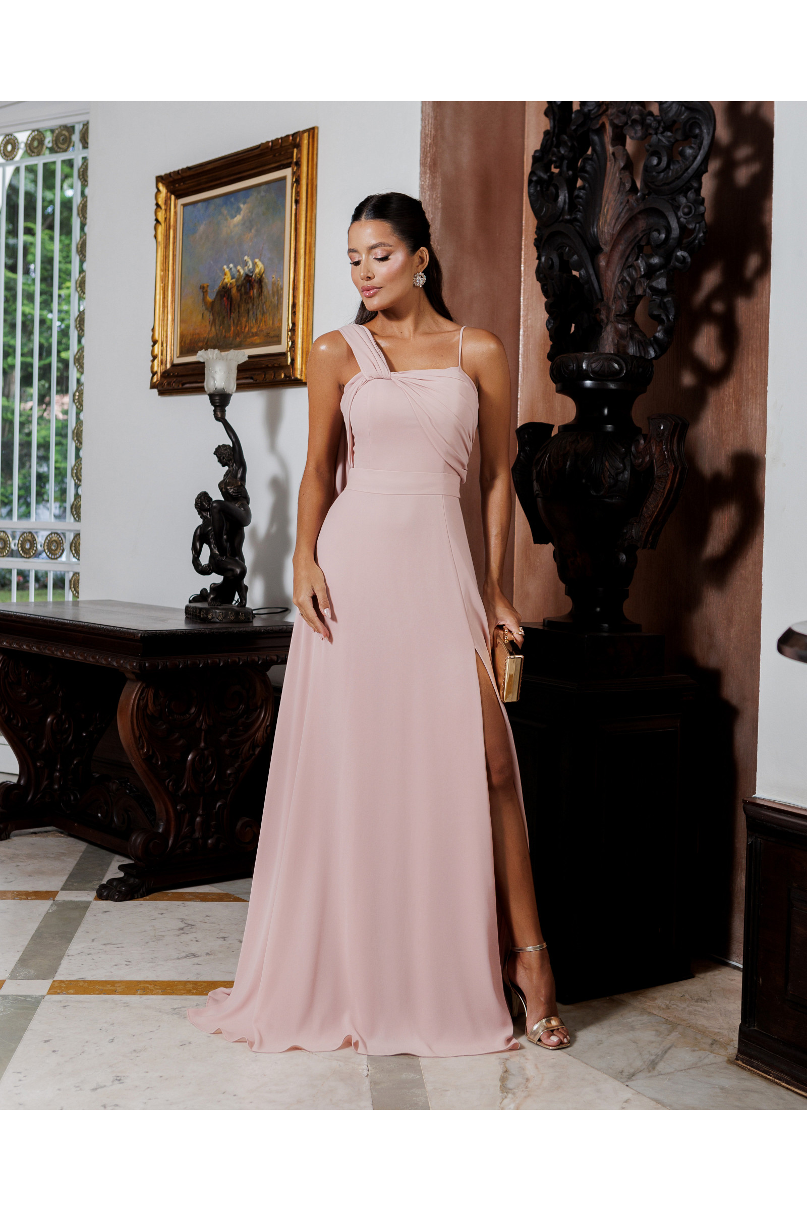 Vestido de Festa Kim em Crepe Musseline – Alças Multiformas