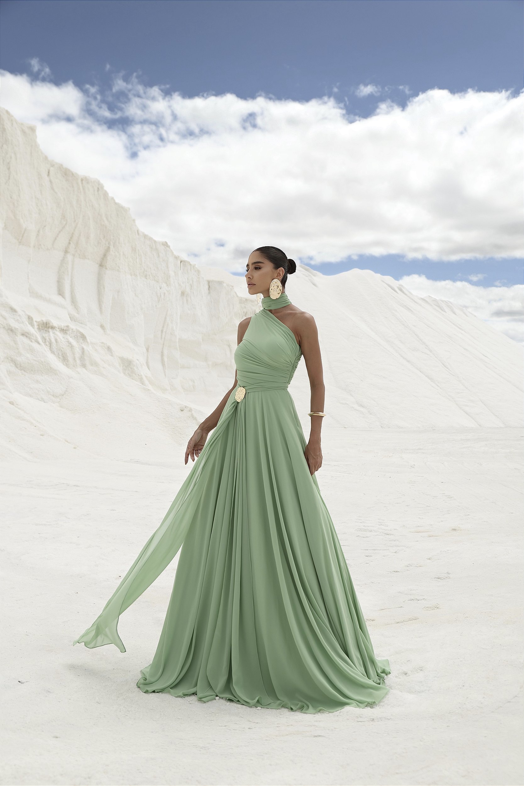 O caimento impecável e o movimento natural do tecido garantem um visual etéreo, confortável e marcante, ideal para eventos especiais diurnos ou noturnos. Disponível em tons suaves que valorizam diferentes tons de pele, o Vestido Crécia é uma escolha atemporal para quem busca elegância e frescor em uma única peça.