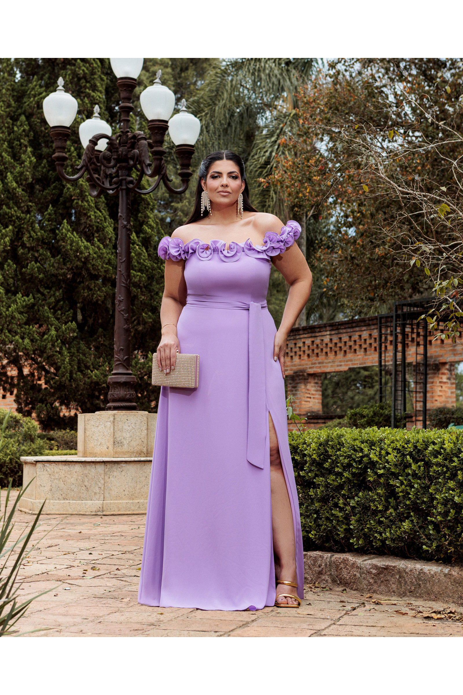 Vestido de Festa Pamêla Plus Size – Crepe Musseline com Detalhe Flor