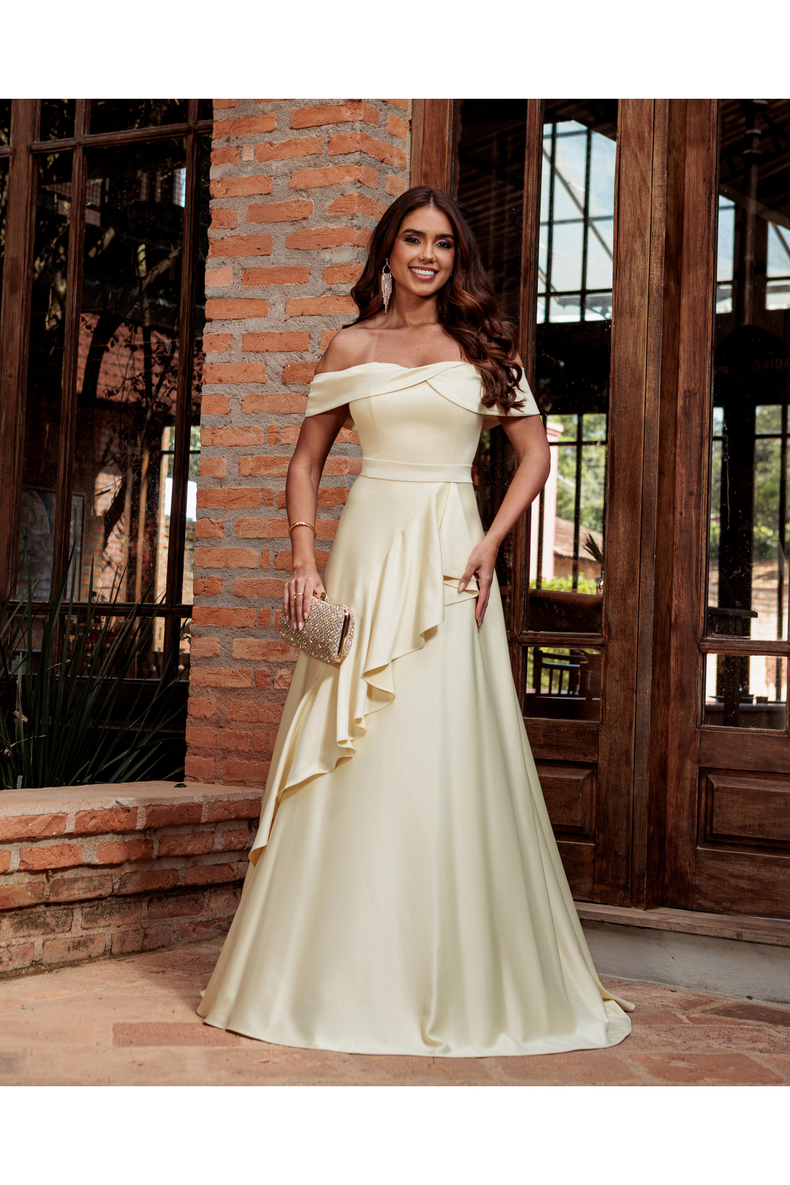 O grande destaque desta peça é o decote ombro a ombro com detalhe torcido, que valoriza o colo de forma feminina e altamente sofisticada. A cintura é evidenciada por um detalhe em camada, técnica de modelagem que desenha a silhueta de maneira harmônica e exclusiva. Com saia longa fluida e sem fenda, o modelo Taylor preza pela elegância atemporal, sendo a opção perfeita para ocasiões formais e protocolos tradicionais.