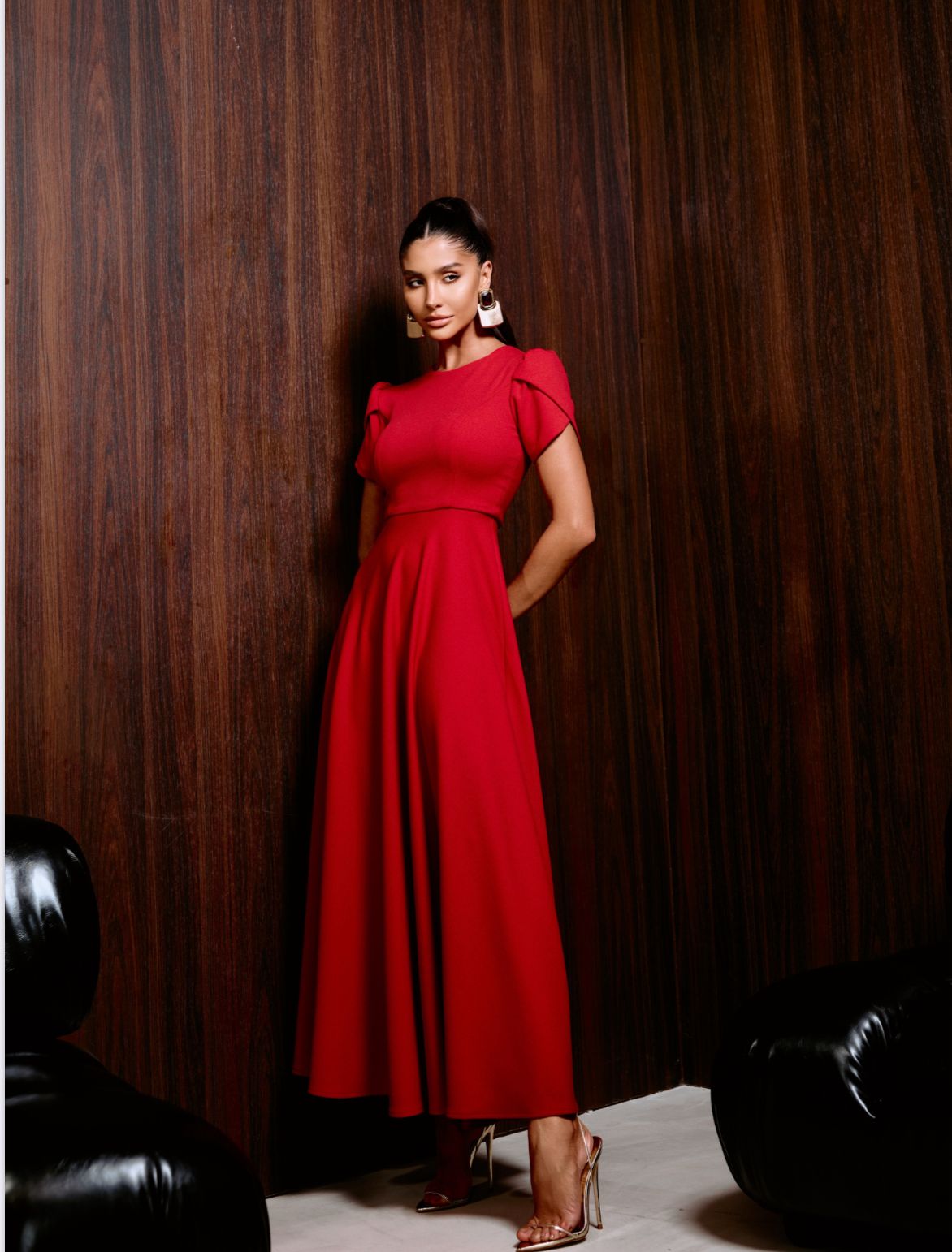 Combine o Vestido Luana com brincos statement e sandálias de salto fino para um look de impacto.
