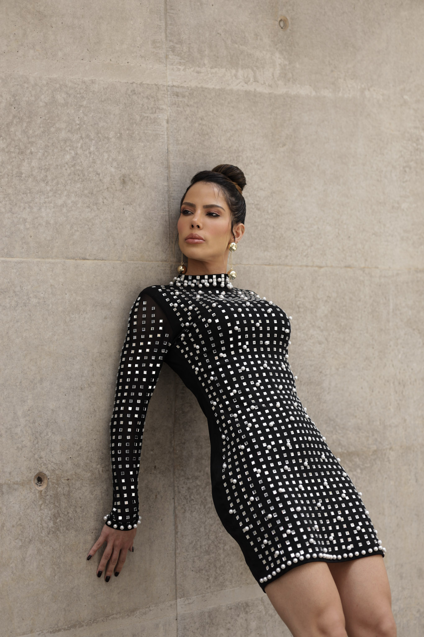O Vestido Manga Longa Strass & Pérolas Celebration é a união perfeita entre elegância moderna e brilho sofisticado.