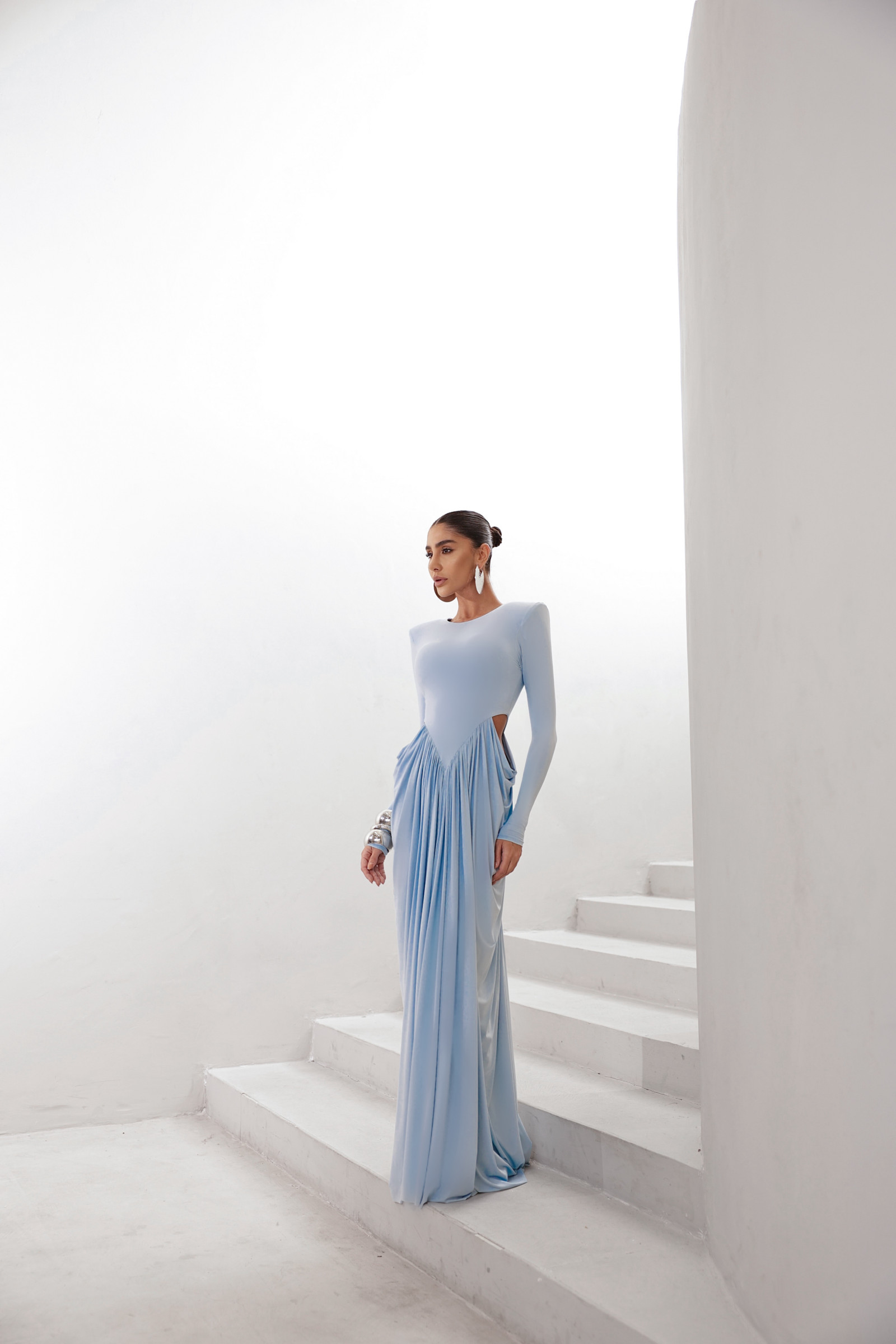 VESTIDO PARIS MANGA LONGA E SAIA DRAPEADA
