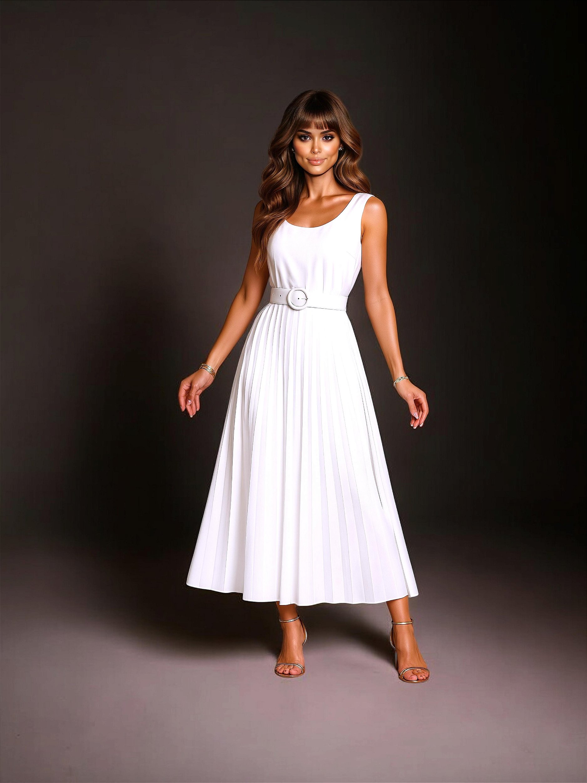 💫 VESTIDO PLISSADO GLAMOUR COM CINTO – MIDI ELEGANTE 💫