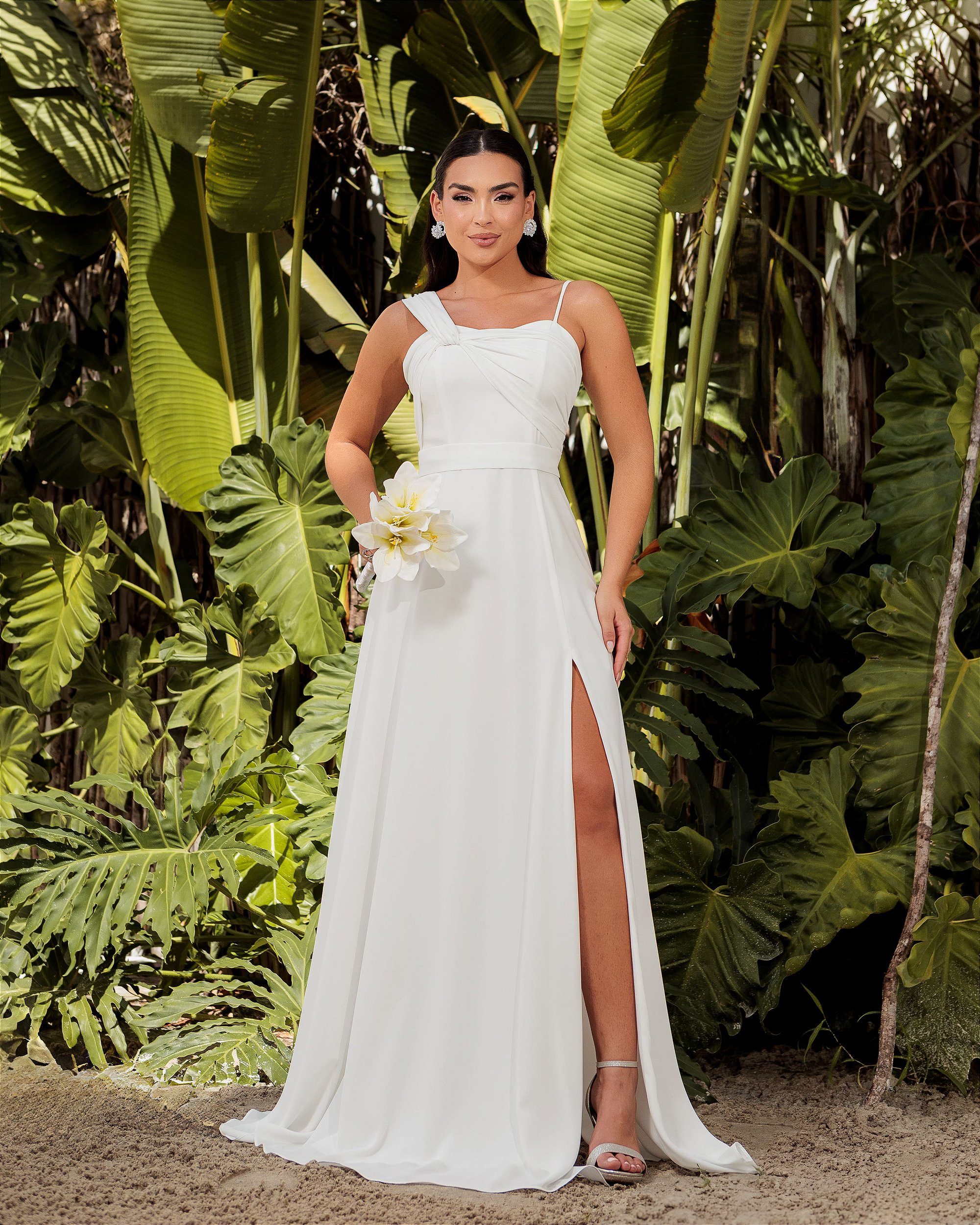 VESTIDO TÓQUIO BUSTO TORCIDO CREPE NOIVINHAS - OFF WHITE